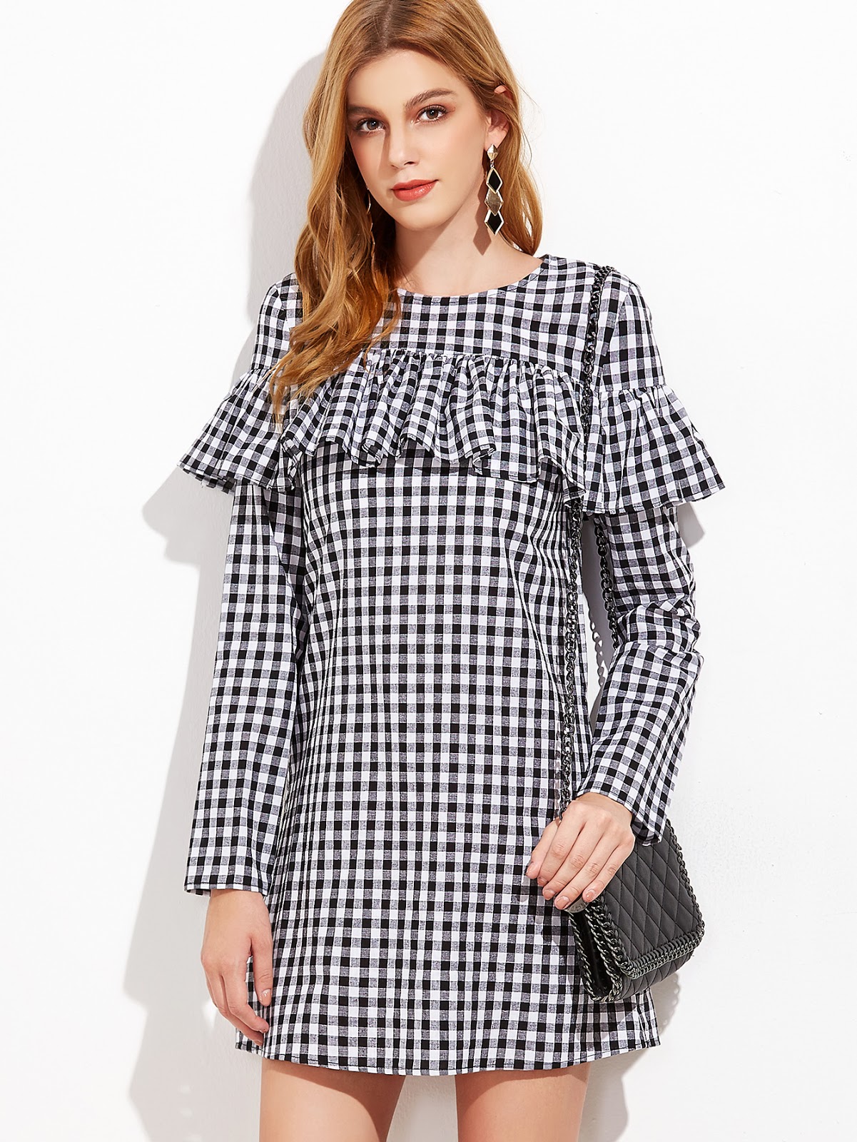 Ay me encanta la faldita asimétrica y el vestido de cuadritos con el volante